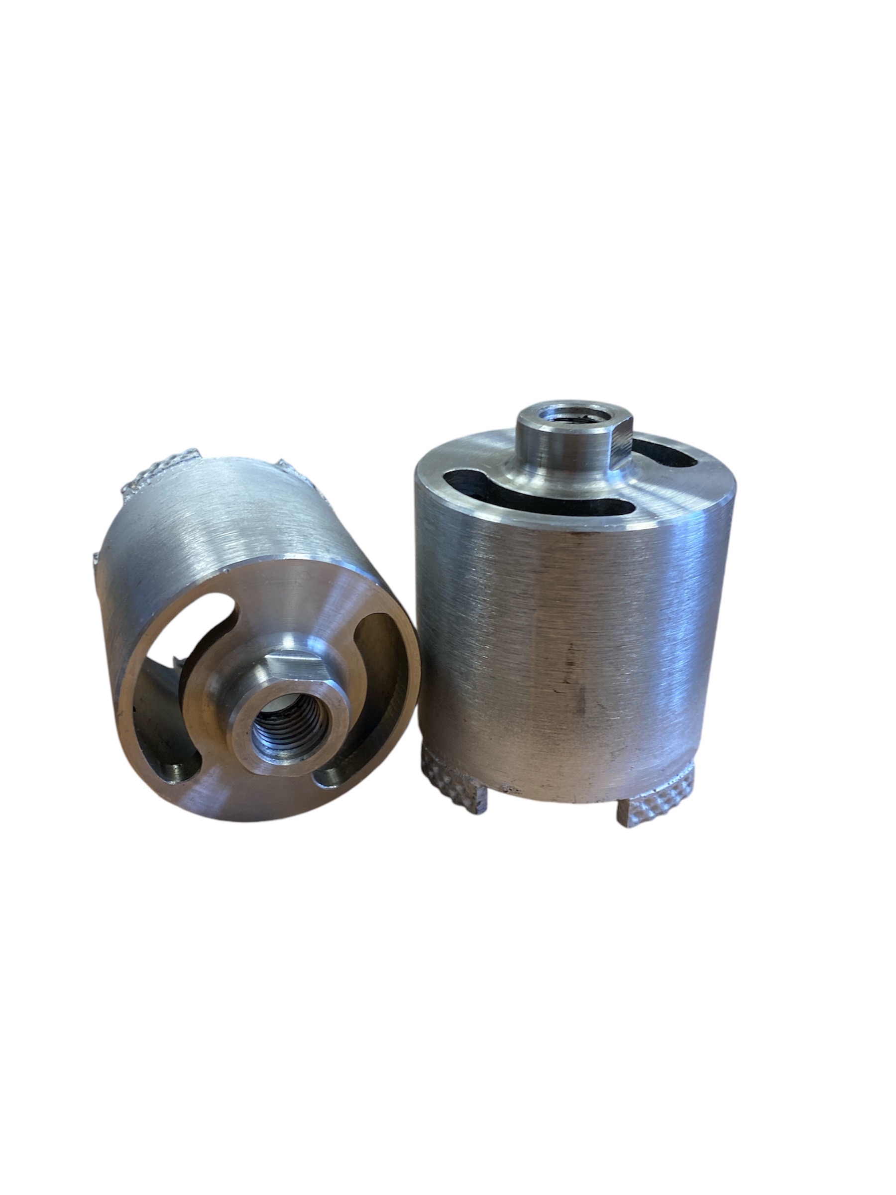 Корпус подрозетника бывает в двух исполнениях с боковыми либо верхним отверстиями для пылеудаления, изготовлен из высокоуглеродистой стали, что позволяет при полном стирании сегментов, не выбрасывать корпус, а произвести реставрацию подрозетника (напаять рабочую зону сегментами).
