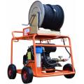 тележка на 4-х полнотелых колесах, колесный тормоз, насос ВД 150 бар при 50 л/мин, бензиновый двигатель Briggs&Stratton Vanguard или Honda GX690 23 л/с, электростартер, бак 12 л, соединение с насосом - редуктор, регулятор давления By-Pass, манометр 0 - 250 бар нерж., защита двигатель от недостатка масла, счетчик моточасов, фильтр очистки воды 50 мкн, выход М22х1,5, шланг высокого давления 12 мм - 80 м арт. 1SN-80-12-1/2-160, барабан для шланга арт. 73960, кран ВД арт. 70615, рукав от аппарата до барабана арт. 831546, две трубоочистные форсунки (тянущая и очистная)