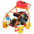 тележка на 4-х пневмоколесах, насос ВД 350 бар при 21 л/мин, бензиновый двигатель Lifan, электростартер, счетчик моточасов, аккумулятор, бак 12 л, соединение с насосом - редуктор, регулятор давления By-Pass, манометр 0 - 1000 бар нерж., фильтр очистки воды 50 мкн, выход М22х1,5, шланг высокого давления 8 мм - 15 м арт. 2SN-15-8-5/16-350, пистолет арт. 202605505, копье 800 мм арт. 511401, улучшенная форсунка 15 град. арт. 613505