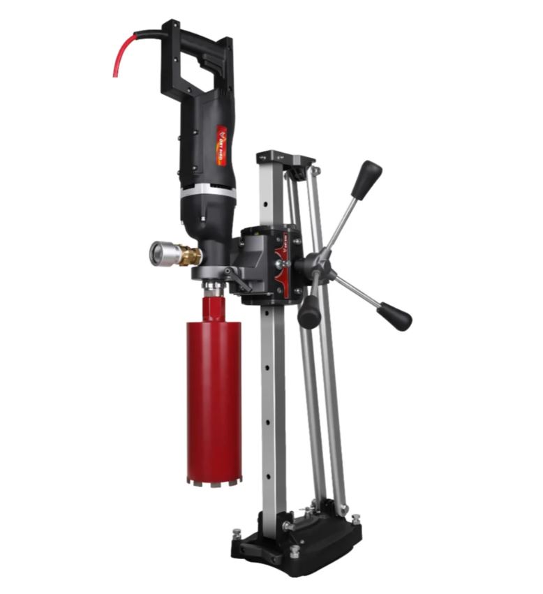 Бесщеточная установка алмазного бурения с микроударом BYCON DB-202D-DBS-162 (сухое/мокрое сверление/сверление с микроударом) диаметр сверления алмазной установкой до 250 мм. Комбинированный шпиндель для коронок c «хвостовиком» ½'' и 1 ¼'’. Сверление под наклоном для 45°, 2 скорости сверления. Упор-откос для увеличенной жесткости. Защитный блок на приводе PRCD для безопасной работы.