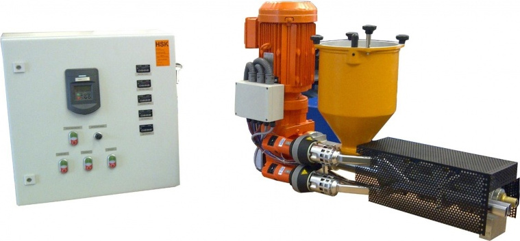 Экструдер промышленный HSK-IE150 (ХСК-ИЕ150) с производительностью 5 – 15 кг/ч предназначен для сварки стандартных термопластов: ПЭ, ПП, ПВХ, ПВДФ и других. При внедрении экструзионной сварки в различные отрасли производства используется для приварки фрикционных лент на транспортные европаллеты и антикоррозийных и фрикционных покрытий на поддоны животноводческих комплексов, сварки элементов кровли и кассет градирен, изготовления элементов установки ветровых стекол автомобилей и многого другого.