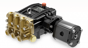 Насосы с приводом от гидросистемы для перекачки воды или буровых растворов. Подключаются к гидросистеме спецтехники. Насосы работают от штатной гидросистемы буровой установки, станка, экскаватора. Плунжерные насосы высокого давления с гидроприводом применяются, например: на каналопромывочных машинах, для промывки канализации; на поливомоечных машинах; на буровых станках для нагнетания бурового раствора (бентонита) в скважину; на буровых установках; на строительной технике, для полива, гидроиспытаний, мойки и др; Буровые насосы с гидроприводом, могут применяться в зонах с потенциально взрывоопасной атмосферой, где не допустимо применение электрических приводов. Присоединение гидромоторов к насосам по SAE J744 B Насосы высокого давления поставляются, как с гидромотором, так и с полым валом под установку Вами гидромотора.