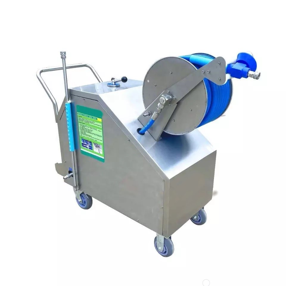 - моющее средство: подмешивание химического средства в воду для смыва наиболее стойких загрязнений. При отсутствии пневмолинии на предприятии. Используется с беспенными моющими средствами. Для получения пены, возможно использование пенообразующей насадки. Качество пены среднее.
