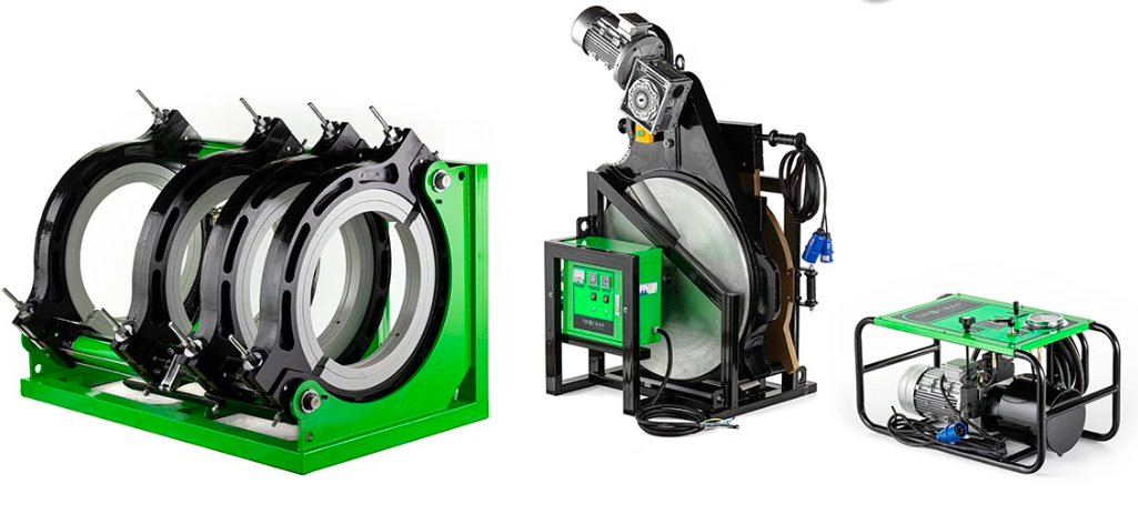 Стыковая сварочная машина ПРОСВАР С 1000 представляет собой комплект сварочного оборудования с гидравлическим приводом. Профессиональный аппарат выполняет контактно-стыковую сварку труб из полимерных материалов диаметром от 630 до 1000 мм. Используется при монтаже и ремонте трасс водоснабжения, газа, топлива и других жидких и газообразных веществ. Блок управления установкой встроен в гидравлическую насосную станцию. Механизм фиксации частей труб обеспечивает точное центрирование свариваемых элементов, гарантируя высокую прочность сварного шва и надежность соединения. Для качественной пайки тройников, крестовин и отводов предусмотрена возможность удаления одного из четырех крепежных зажимов. Торцеватель машины обеспечивает быструю и точную механическую обработку края свариваемой детали, для достижения стыковки с минимальным зазором. Антипригарное покрытие нагревательного элемента исключает прилипание трубы, сохраняя чистоту поверхности для дальнейшей работы.