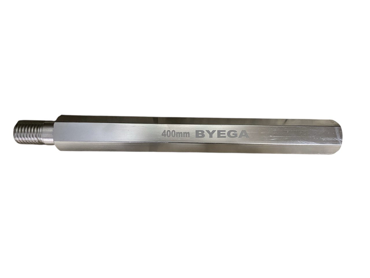 Удлинитель алюминиевый BYEGA для алмазных коронок длиной 400 мм. На первом этапе бурение выполняется при помощи простой коронки длинной 450 мм, далее керн извлекается из отверстия, накручивается удлинитель к коронке и бурение продолжается уже на большую глубину. Допускается применение нескольких соединенных между собой удлинителей.