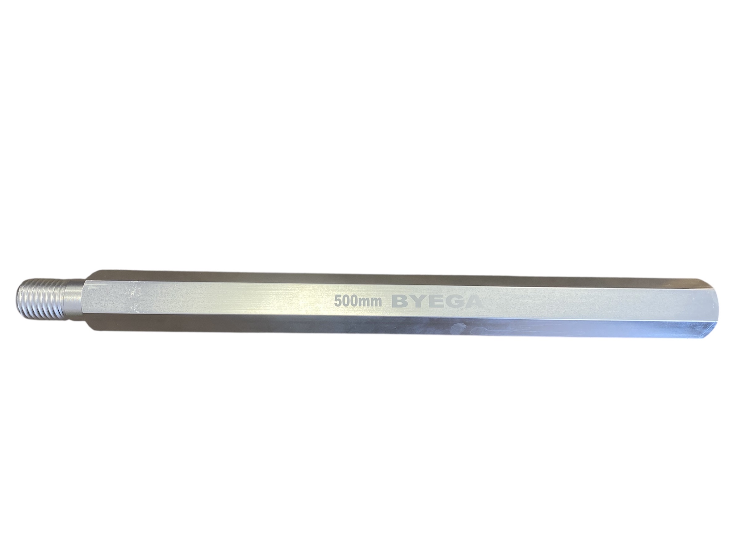Удлинитель алюминиевый BYEGA 500мм. На первом этапе бурение выполняется при помощи простой коронки длинной 450 мм, далее керн извлекается из отверстия, накручивается удлинитель к коронке и бурение продолжается уже на большую глубину. Допускается применение нескольких соединенных между собой удлинителей.